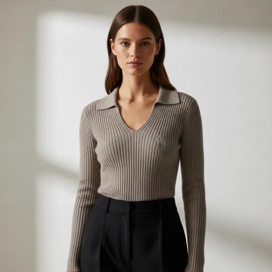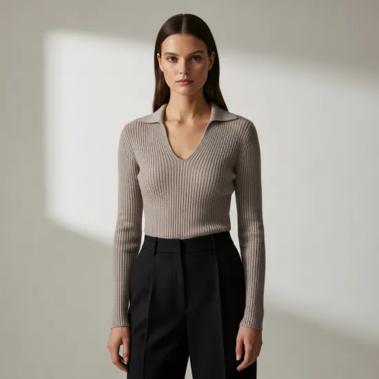 • Tasarım Detayları: Derinliği titizlikle ayarlanmış V yaka kesimi, boyun bölgesini daha uzun ve zarif gösterir. Boyuna uzanan ince fitil (ribana) detayları, silüeti daha fit ve ince algılatır. Manşetlerdeki hafif uzun kesim ve dikişsiz bitişler, premium bir görünüm sunar.